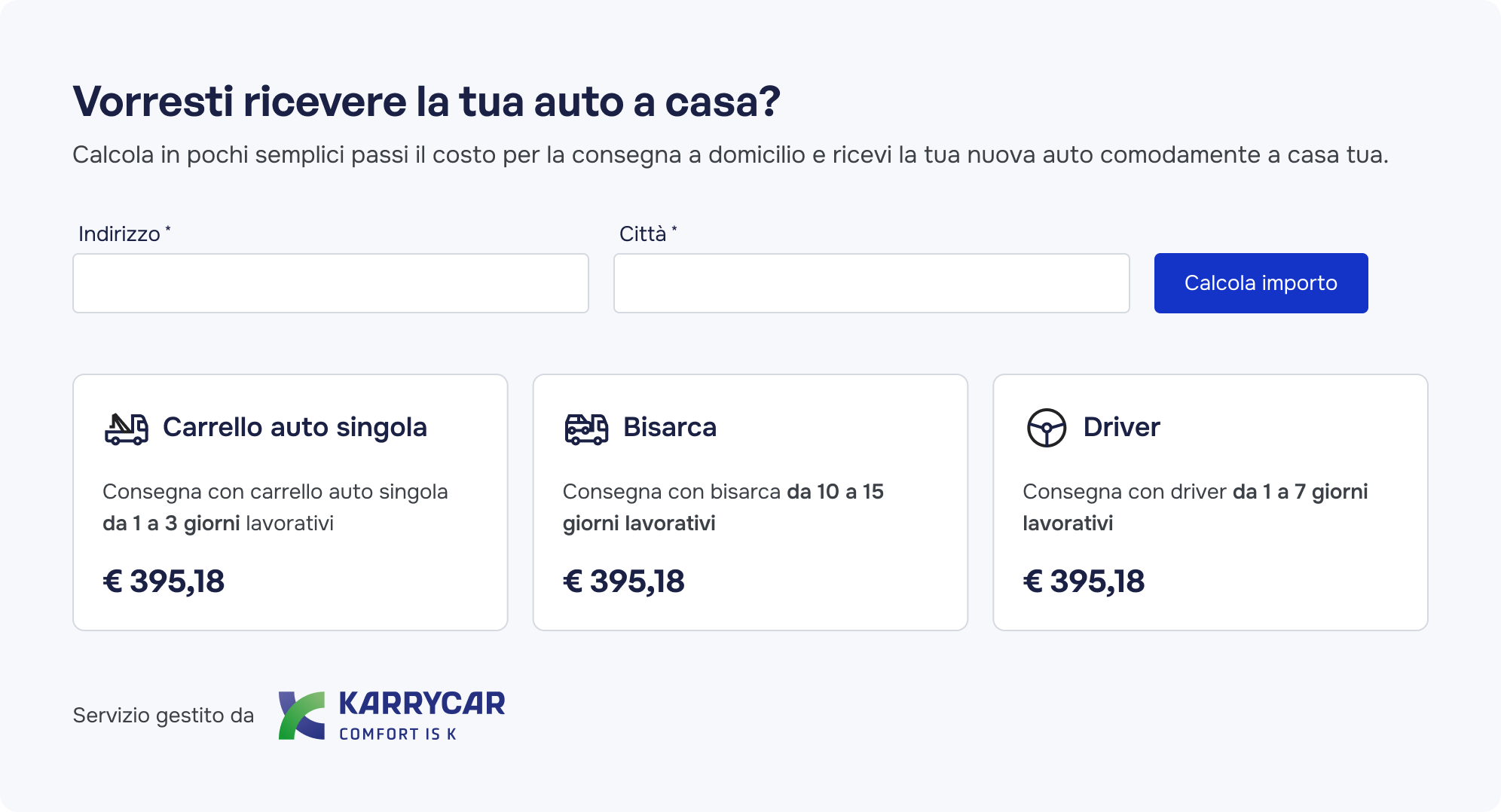 Con le API Karrycar puoi integrare tutto il servizio di trasporto nel tuo e-commerce offrendo al cliente anche la consegna diretta a casa.