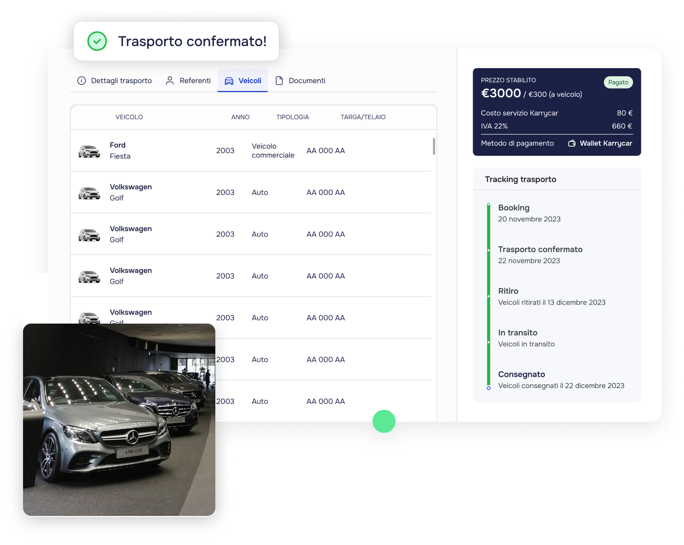 Karrycar è la soluzione ideale per dealer, rental e aziende che devono movimentare veicoli tra piazzali, sedi e hub, ottimizzando i tempi di gestione e mantenendo il completo controllo su ogni fase del processo.