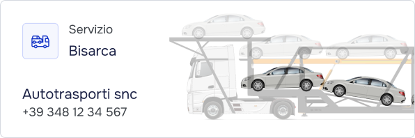 Le bisarche arrivano ovunque una bisarca possa fisicamente arrivare. Nel caso in cui l’autista il giorno del carico o dello scarico si rendesse conto che la zona non è raggiungibile contatterà il referente per accordarsi su un luogo più agevole. Per questo ti chiediamo flessibilità negli spostamenti o di scegliere il servizio trasporto con driver.