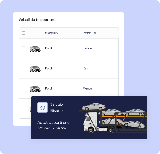 Con il nostro gestionale hai tutto in un unico spazio: richieste, offerte di preventivo, storico dei trasporti, il tracking, le movimentazioni, la lista delle auto e i viaggi abbinati, la prefatturazione e molto altro. Eviti i lunghi scambi via mail e gli accordi telefonici, risparmi tempo, tieni traccia dei processi e ottimizzi la tua gestione logistica.