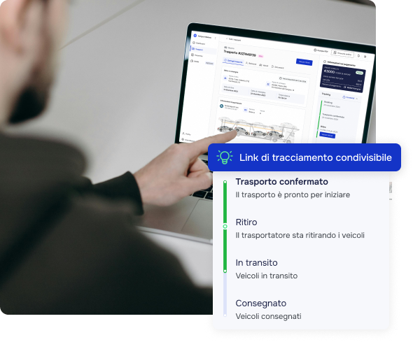 Grazie al tracking tieni sotto controllo i tuoi veicoli e segui lo stato di avanzamento del trasporto.
