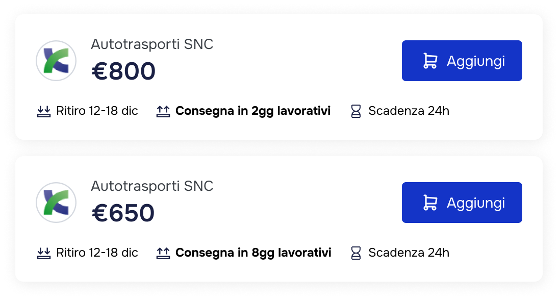 Con il nostro gestionale hai tutto in un unico spazio: richieste, offerte di preventivo, storico dei trasporti. Eviti i lunghi scambi via mail e gli accordi telefonici, risparmi tempo, denaro, tieni traccia dei processi e ottimizzi la tua logistica.
